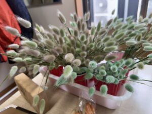 本日はエシベジでのクラフト作業などに使うラグラスを収穫してきました。 ウサギのしっぽに形が似ているのでラビットテールともいわれていて、元の色は緑ですが染色剤を下から吸わせると鮮やかな色に染まります。 スワッグやリースなど …