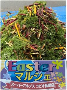 こんにちは、エシベジです。 4/4(土)に八王子市スーパーアルプスコピオ長房店で開催される Easterマルシェに出店予定です。 今回のマルシェでは、にんじん、さつまいもの販売の他、 甘いさつまいもを使用した焼き芋だんご …