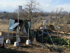 エシベジの畑にアンテナ、カメラ、気象データが取れる機械が投入されました!今後この機械をどのように運用するか楽しみです。