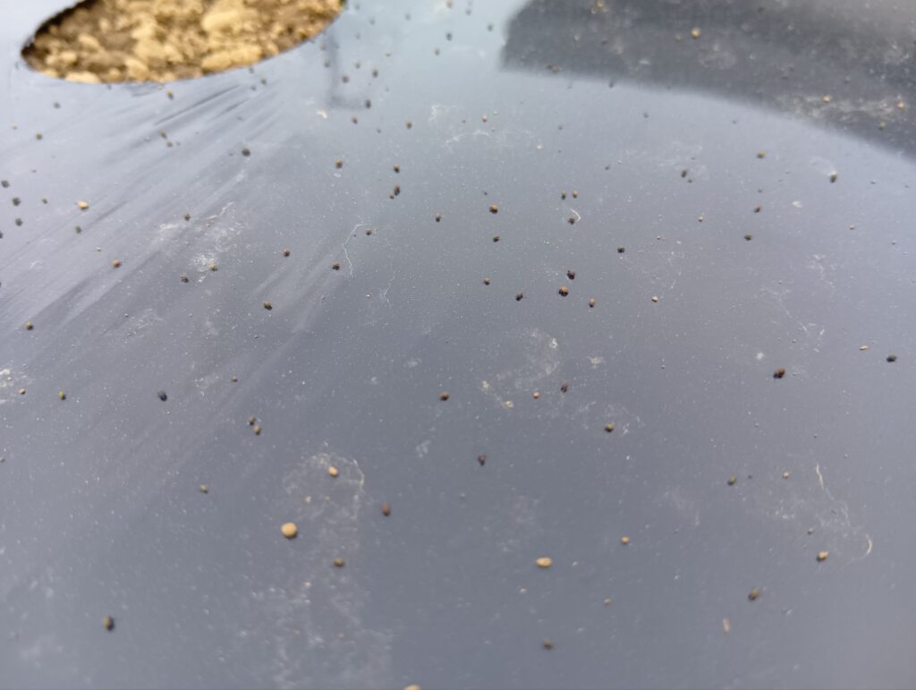 2026年4月6日 ブログ ご存知でしたら 週末のイースターマルシェにお越しくださった皆様、どうもありがとうございました。あいにくの天気で桜も結構散ってしましましたが、おかげさまで無事にやり終えることができました。そして今日は急に初夏のような気温で、桜に続く花木が例年より早く見頃を迎えています。少々蒸し暑い中種まきを行いましたが、今年も謎の粒虫がマルチの上で飛び跳ねていました。一体何という名の虫なのでしょうね?