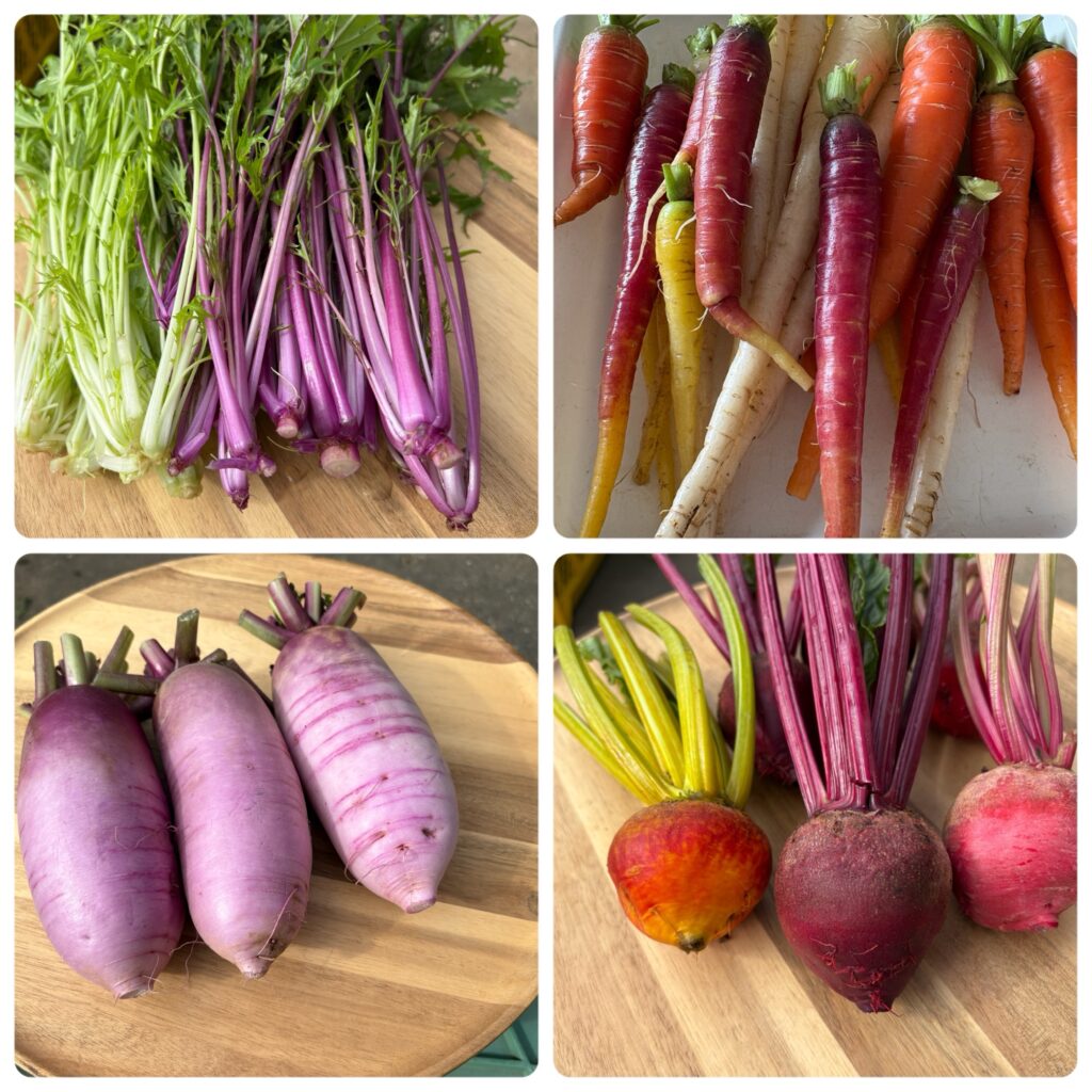 アブラナ科の大根、カブ、ラディッシュ、白菜、カリフラワーは計画比ガタガタですが、生き残った強い野菜と、ニンジン、ビーツ、ジャガイモ、さつまいも、水菜、ほうれん草で秋冬野菜、頑張ります。
