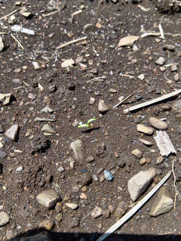 2025年9月2日 ブログ 念願の発芽 エシベジの秋冬収穫をするにんじんがようやく発芽してくれました。 最近のまったく雨がない天気の中、日々水まきを行うも気温の高さによってすぐ乾いてしまう。中々に大変な環境下でしたがひょろりと発芽しているのを確認できました。 全体としてはまだまだ発芽していないところもあるので水をなるべく切らさず、発芽までもっていきたいです。