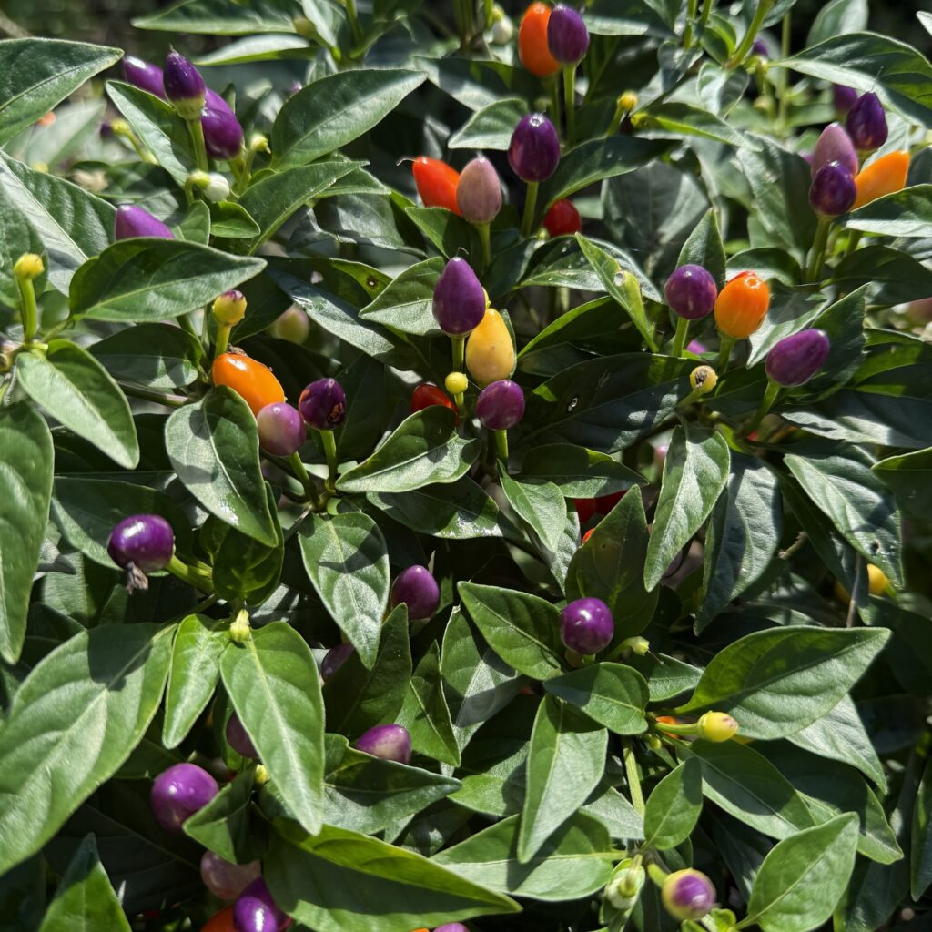 2025年10月28日 ブログ 秋を感じた一日 今日は雲が少なく秋の柔らかい気温と日差しの中、畑仕事を行いました。 作業を行った畑に植えていた五色とうがらしが立派に育っていて、日に当たる上部にある実はカラフルな色使いですが、下部にある実は全体として赤く熟すと赤色になることが確認できました。 五色の名から最後までカラフルなのかと思っていたのでとても興味深いです。このような変化を見ると野菜は不思議だなと思いました。