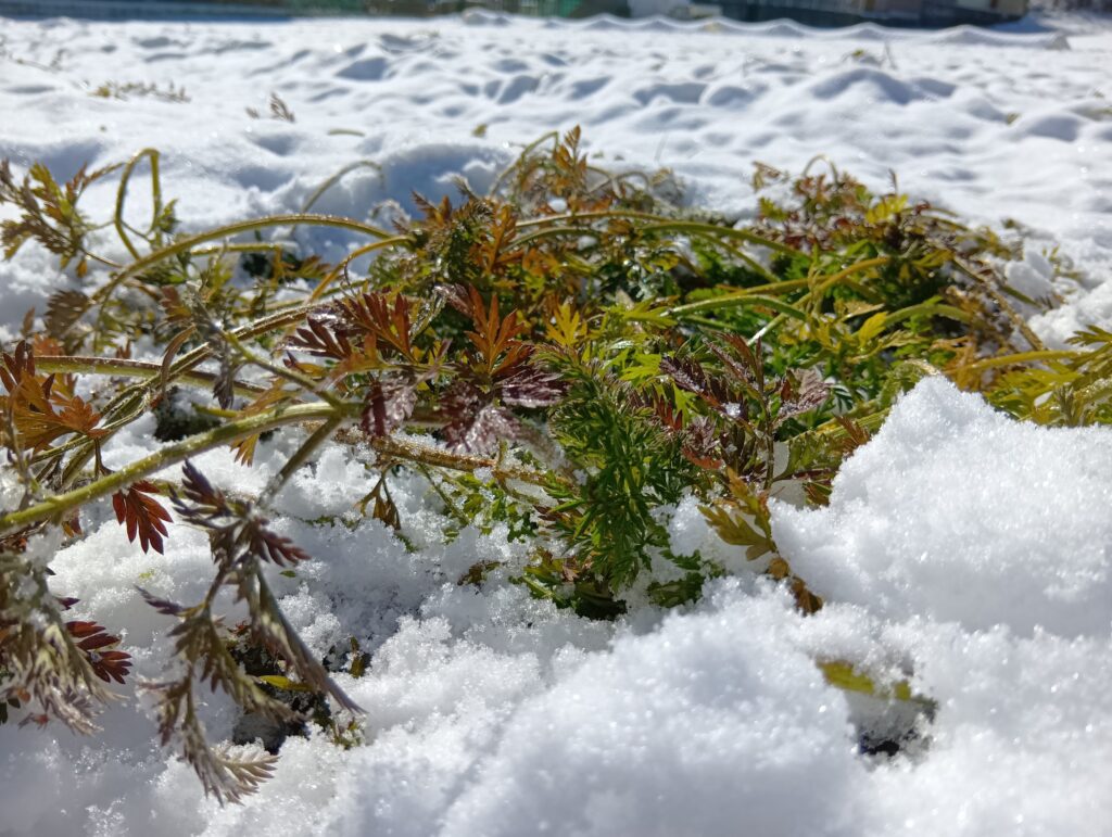 畑にまだ残してあるニンジンは雪をどかして掘り出しました。