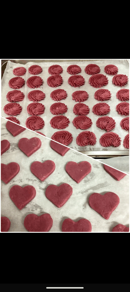 2025年11月14日 ブログ 絞りクッキー試作 こんにちは!エシベジです! 先週に引き続き今週も薔薇型に絞る練習も兼ねて、クッキーの試作を行いました!手伝って下さったみんなさん全員,先週よりも丁寧で綺麗に絞れていてどんどん上達していき、こちらとしても嬉しい限りです! 本番もこの調子で一緒に作っていきたいので、完成品を楽しみに!