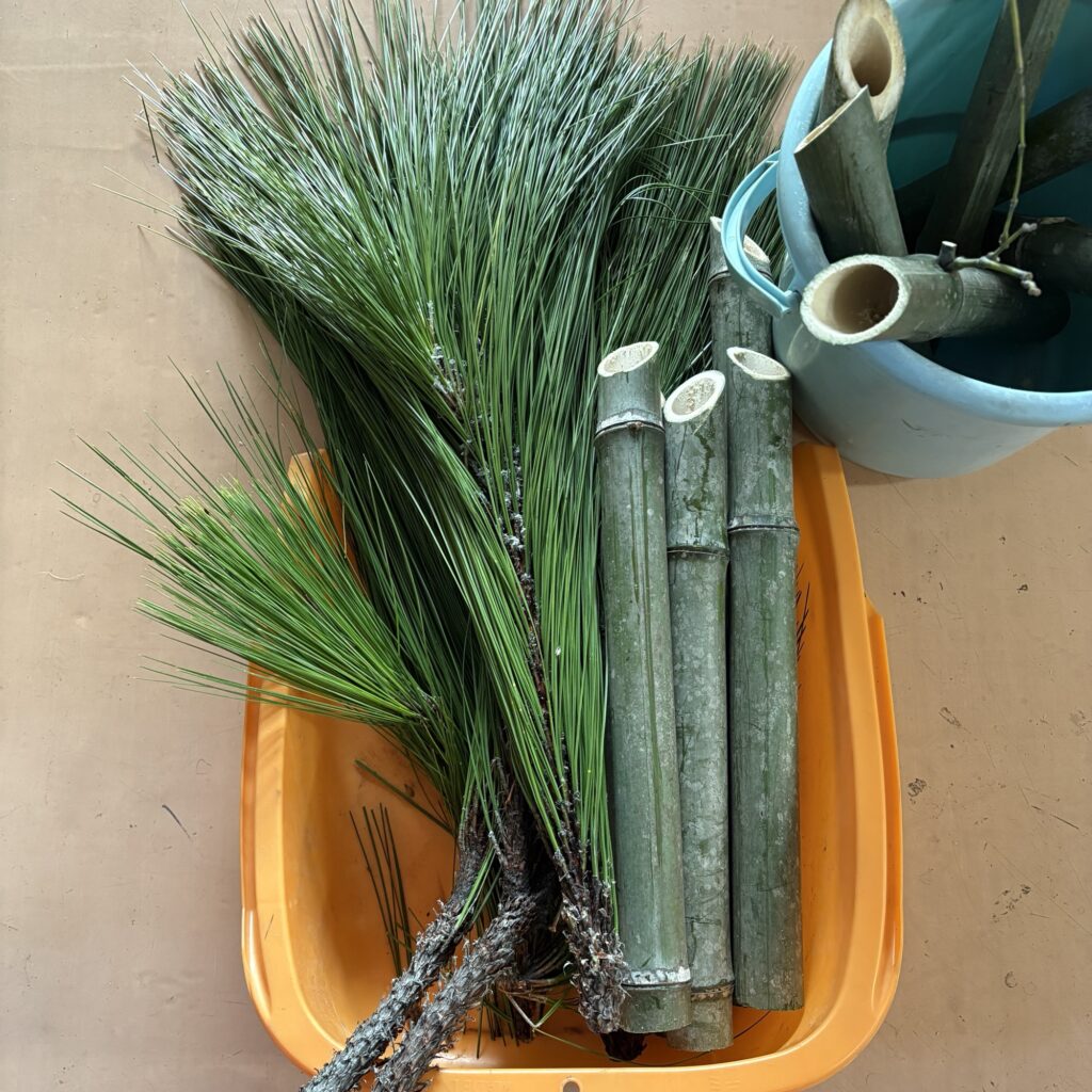事業所では、畑の地主さまにいただいた、竹や松を使った門松づくりがはじまりました。利用者さまごとにこだわるところが違うので、個性豊かなすばらしい門松が着々とできあがってきています。